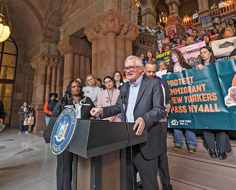 卡范纳日前在州议会出席移民保护活动。(@BrianKavanaghNY)