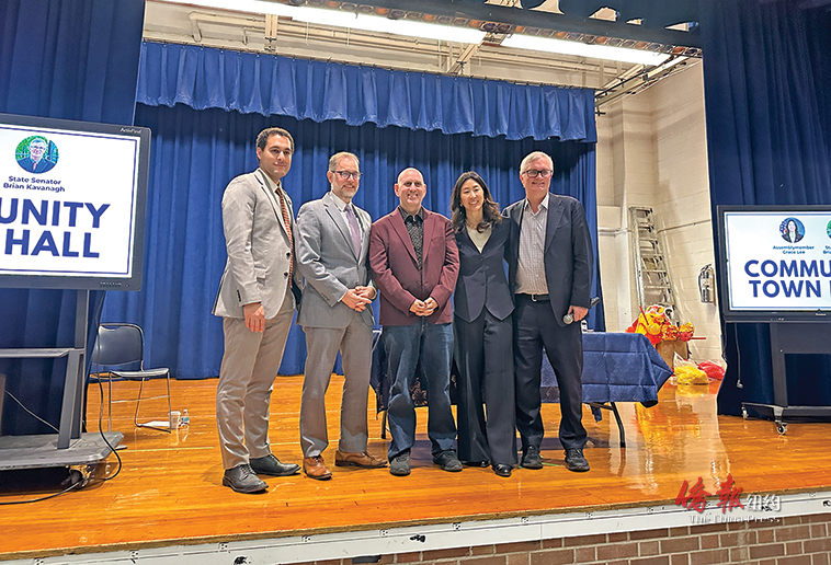 【侨报记者韩清湲2月5日纽约报道】州参议员卡范纳(Brian Kavanagh)联合州众议员李荣恩(Grace Lee)5日于曼哈顿华埠附近的P.S.20小学举行社区里民会议,回顾政策成果,并就坚尼路重新设计计划进程、华埠监狱、罗斯福公园治理、电单车安全等议题回应社区疑问,多位民选官员出席。