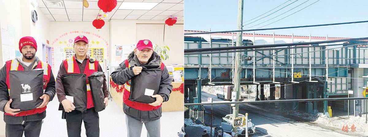 LCP巡逻队员与被爆存在安全隐患的地铁站屋顶积雪。(LCP提供)