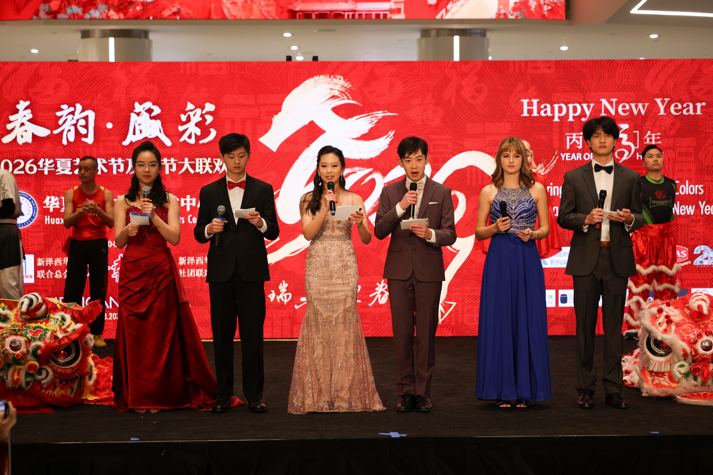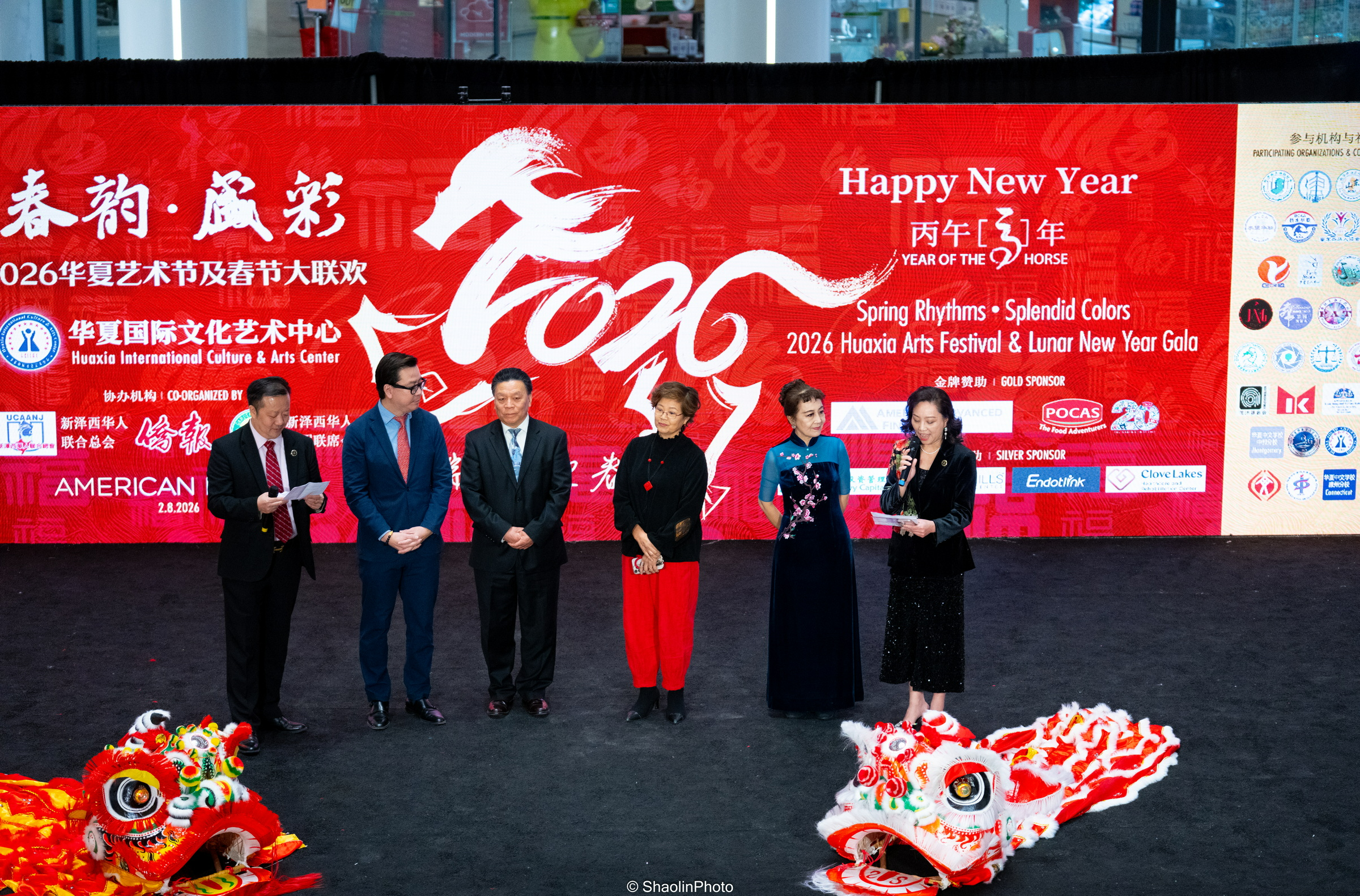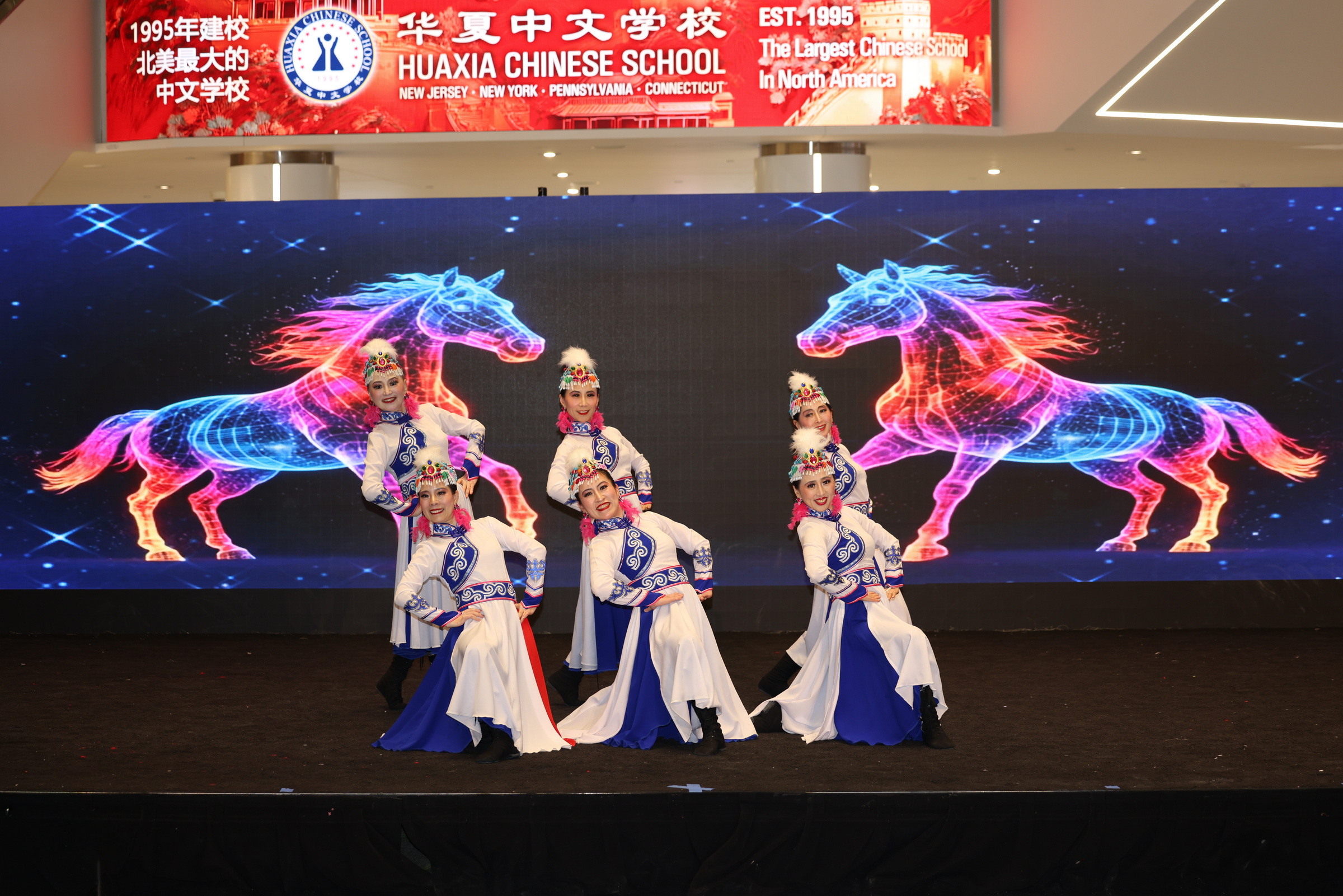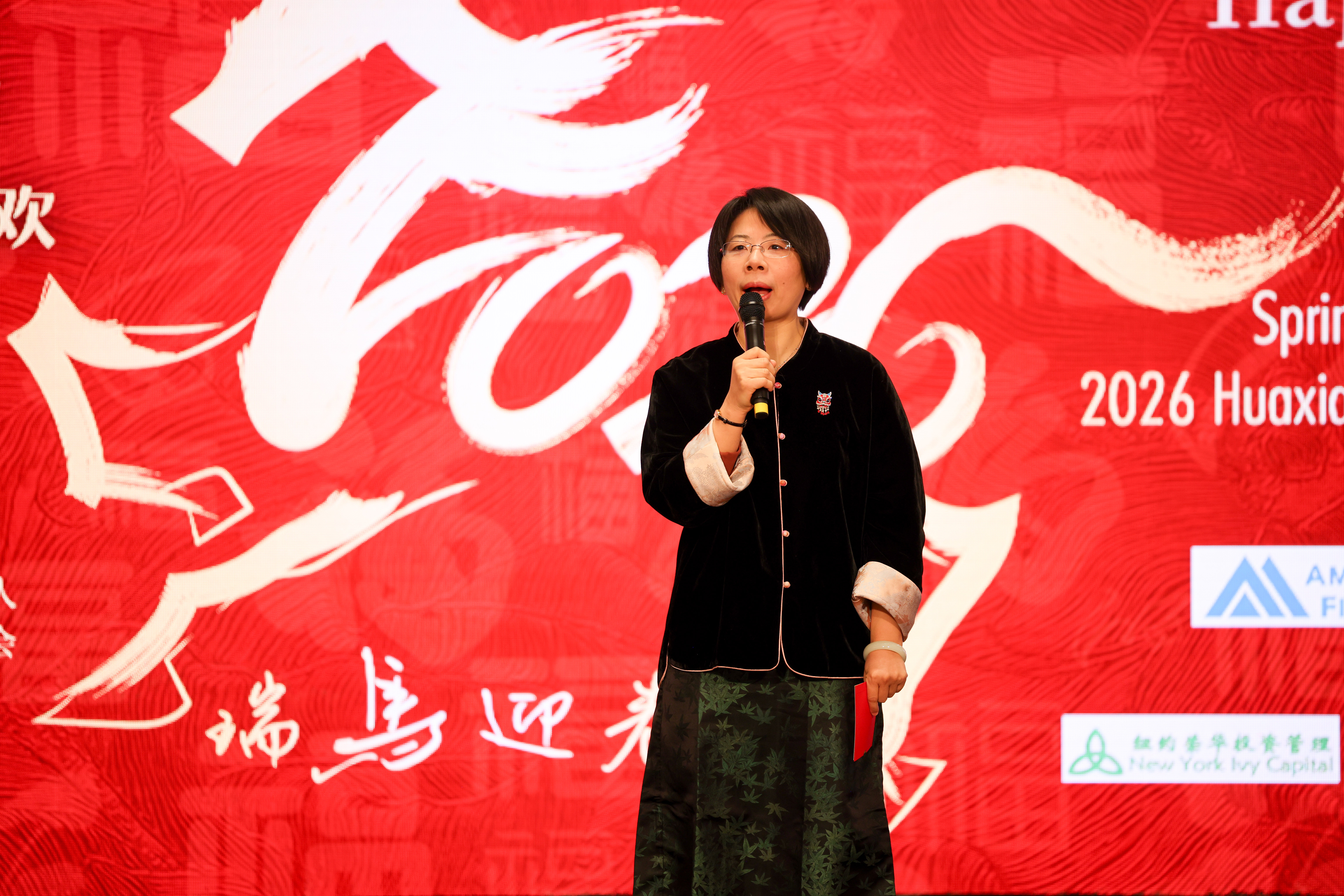 中国驻纽约总领馆副总领事孙丽萍女士在致辞中动情地说:“在海外的春节时刻,能看到这么多社团、家庭和艺术团体聚在一起,用一台晚会传递文化与情感,这是非常有意义的事。新一代移民正在接力,让这样的活动越办越好,让社区更加有温度、有色彩。” 新泽西华人联合总会会长胡世远先生则高度评价华夏中文学校三十年来深耕社区、服务家庭的贡献,并表达了各界携手共建美好社区的愿景。随后,多位侨领代表共同登台,手持喜庆的骏马祥瑞纪念币红包与马年吉祥物,为全场齐声送上“马年吉祥”的祝福,掌声此起彼伏,气氛热烈。