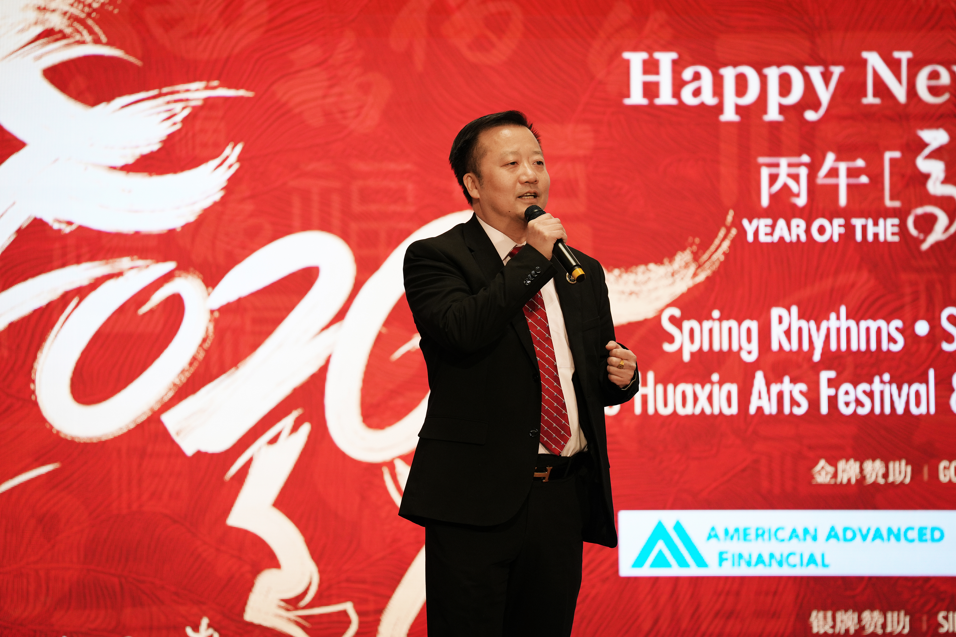 华夏中文学校总校长薄英戡先生代表主办方致欢迎辞。 他表示,春节不仅是中华民族最重要的传统节日,更是承载文化血脉与情感归属的精神纽带,是海外华人守望文化根脉的重要时刻。本次艺术节以文艺为载体、以交流为桥梁,旨在向主流社会呈现中华文化的深厚底蕴与独特魅力,促进中美文化互鉴,展现华人社区团结进取、开放包容的精神气象。