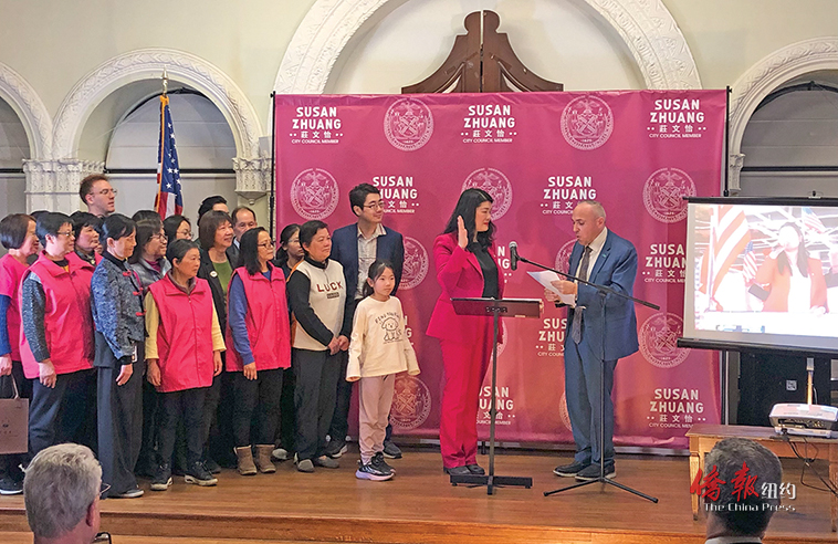 当晚活动嘉宾云集,数百人相聚一堂,见证了庄文怡在选区的宣誓就职典礼。多位民主党同僚和社区人士出席并发言,包括:犹太社区关系委员会(JCRC)首席执行官、前市议员崔马克(Mark Treyger),市议员纳西斯(Mercedes Narcisse)、州参议员刘醇逸等。州众议员寇顿幕僚长贺立宁担任当晚司仪,崔马克主持了宣誓仪式。