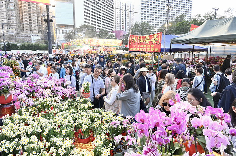 ▲2月16日,农历乙巳蛇年除夕,民众到位于香港维多利亚公园的年宵市场选购年花,迎接马年新春。图为众多民众在维多利亚公园年宵市场选购年花。中新社