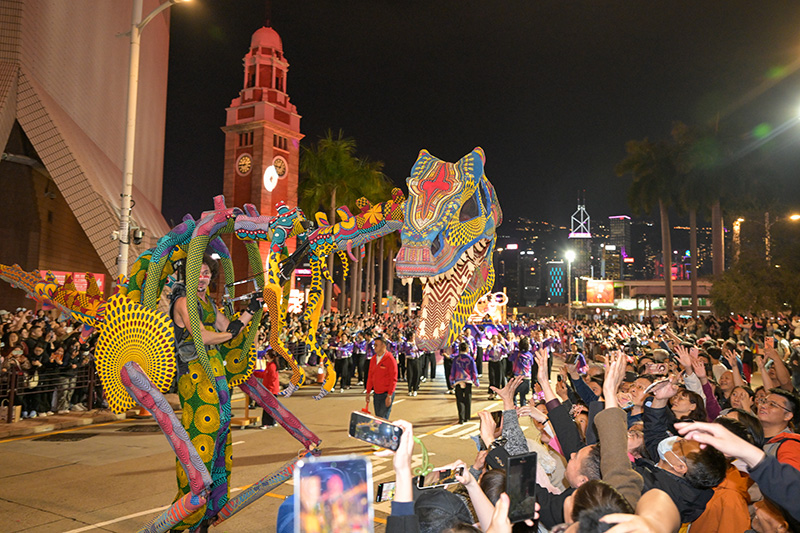 【侨报讯】香港中通社报道,丙午马年大年初一(17日)晚,香港尖沙咀街头洋溢着浓厚的节日喜庆。距离“国泰新春国际汇演之夜”正式开场尚有一小时,巡游路线两旁已挤满期待已久的市民和旅客。