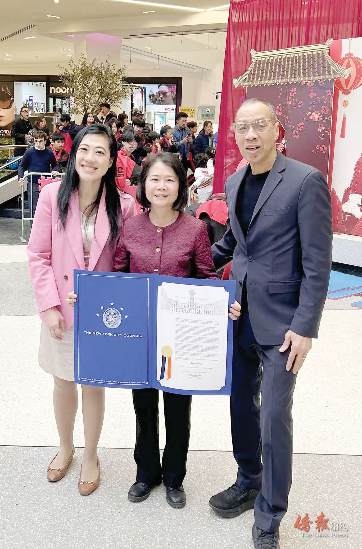 黄敏仪向法拉盛图书馆馆长曾阳颁发了褒奖状。