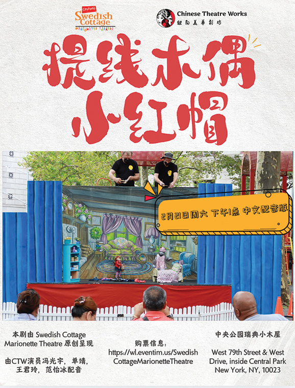 【侨报纽约讯】为庆祝农历新年的到来,纽约唯一的儿童木偶剧院 —— 位于中央公园的瑞典小屋木偶剧院(Swedish Cottage Marionette Theatre)携手纽约美华剧坊(Chinese Theatre Works),将于本周六(21日)下午1点,为纽约观众推出普通话版的《提线木偶·小红帽》(Little Red’s Hood)。