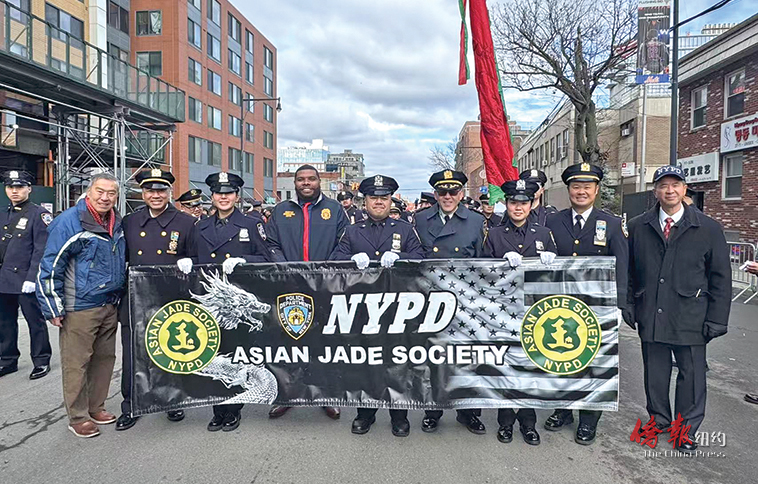 市警亚裔玉石协会的分队走在游行队伍前列,众多市府和议会官员出席。(读者提供)