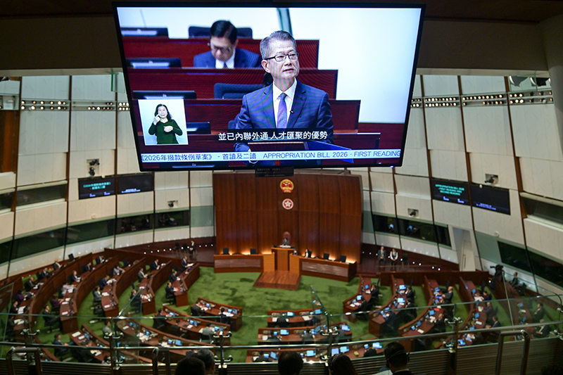 ▲2月25日,香港特区政府财政司司长陈茂波发表2026/2027财政年度特区政府财政预算案。中新社
