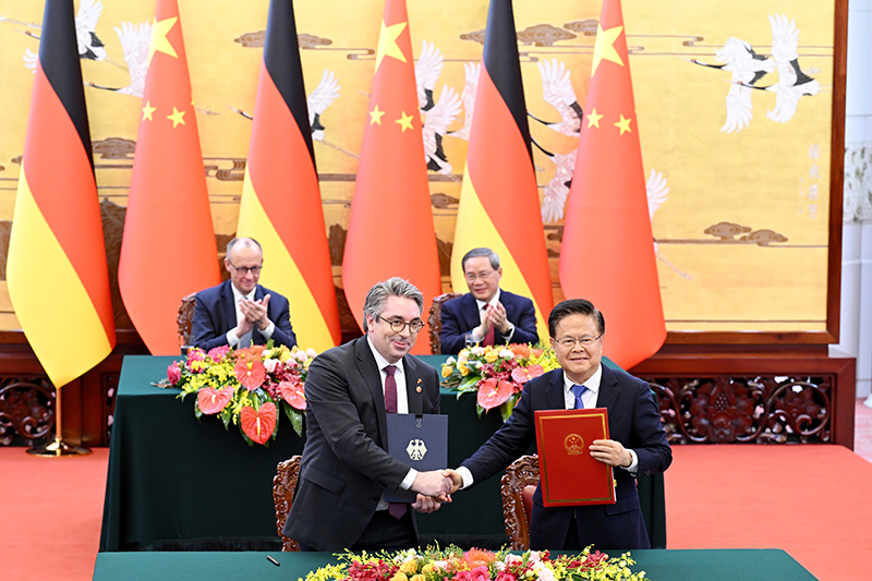 二是要做开放互利的创新伙伴。德国政府在技术、创新、数字等领域提出新发展战略,同中国“十五五”时期智能化、绿色化、融合化发展方向高度契合。双方应加强发展战略对接,支持两国人才、知识、技术双向流动,促进人工智能等前沿领域对话合作。双方要正确把握竞争和合作的关系,寻求互利共赢的合作路径,共同维护产业链供应链稳定畅通。