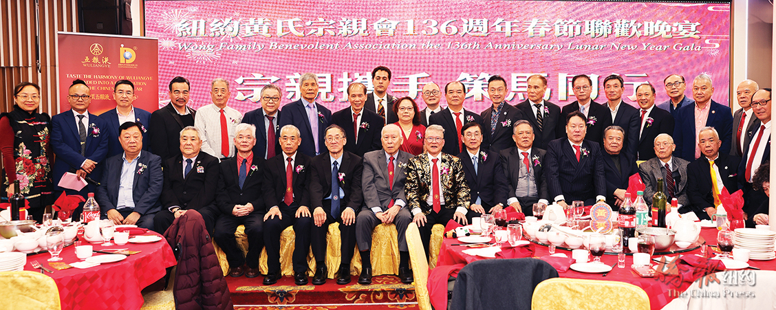 【侨报纽约讯】美国纽约黄氏宗亲会日前于曼哈顿华埠举办136周年春节庆典,近四佰嘉宾出席。州众议员李荣恩、市议员黄友兴与市议员马泰、国会众议员高德曼代表叶凌霞分别向黄氏宗亲会和两位主席黄华清、黄启超及先进会员黄伟灵、黄智明和黄慕兰颁发了奖状。民事法庭法官Betty Lugo也出席当晚宴会。