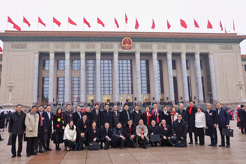 ▲3月5日,中国十四届全国人大四次会议开幕会在北京人民大会堂举行。图为会议开始前,港区全国人大代表在大会堂前合影。香港中通社