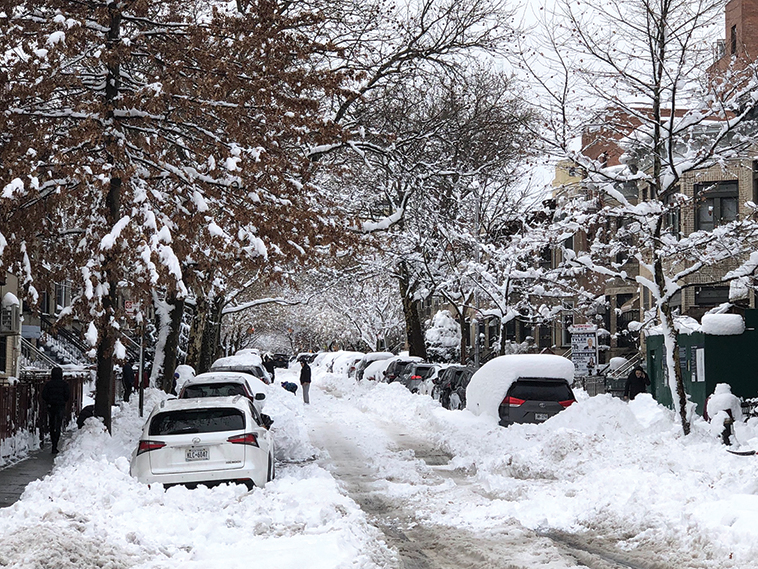 大雪期间纽约市街边的停车位。(高诗云摄)
