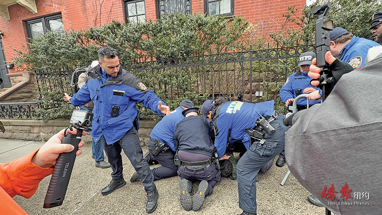 【侨报记者韩清湲3月8日纽约报道】于7日(周六)在市长官邸外爆发的反穆斯林集会冲突最终导致警方逮捕6人,同时警方在现场缴获两个疑似爆炸装置。警方8日(周日)新发现另一个爆炸装置且确认两个都非无害的烟雾弹或“诈弹”,市长曼达尼等多位官员发表声明谴责。
