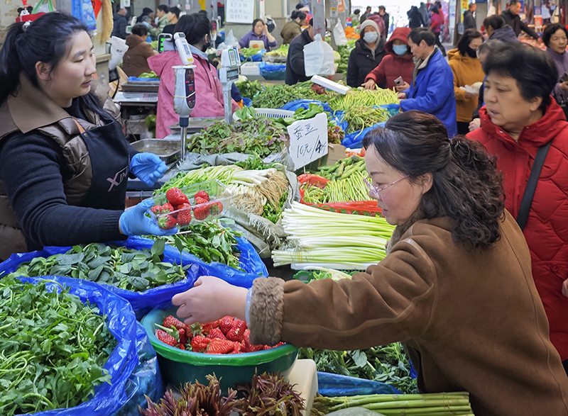 ▲3月9日,江苏南京,市民在一家农贸市场内选购蔬菜。当日,中国国家统计局发布的最新数据显示,2026年2月份,全国居民消费价格同比上涨1.3%。中新社