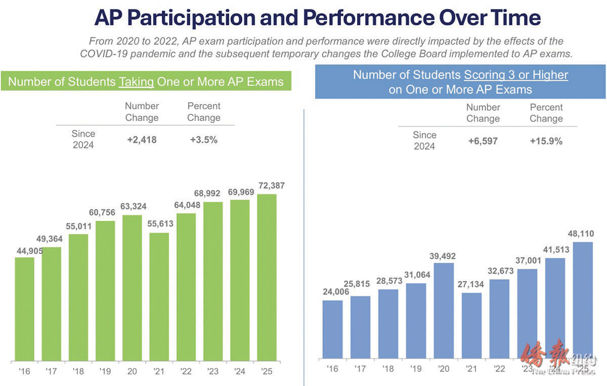 近年来AP考试参与度与成绩表现数据。 (市教育局)