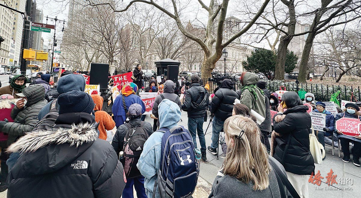 当日寒风凛冽,但众多家庭护理员在市政厅外大声疾呼,要求市长曼达尼立即结束24小时工作日。华人家庭护理员雪珍表示,“《结束24小时工作日》法案由市议员马泰(ChristopherMarte)推到市府多年了,但一直并未投票。护理工友们无惧恶劣的天气发起绝食抗议!多次在市府门口示威!现在我们迎来新的市议长和之前表示支持我们护理结束24小时工作日的新任市长曼达尼。而曼达尼至今仍未表态,我们是人不是机器,24小时工作日必须停止!请你马上兑现你的竞选承诺。”