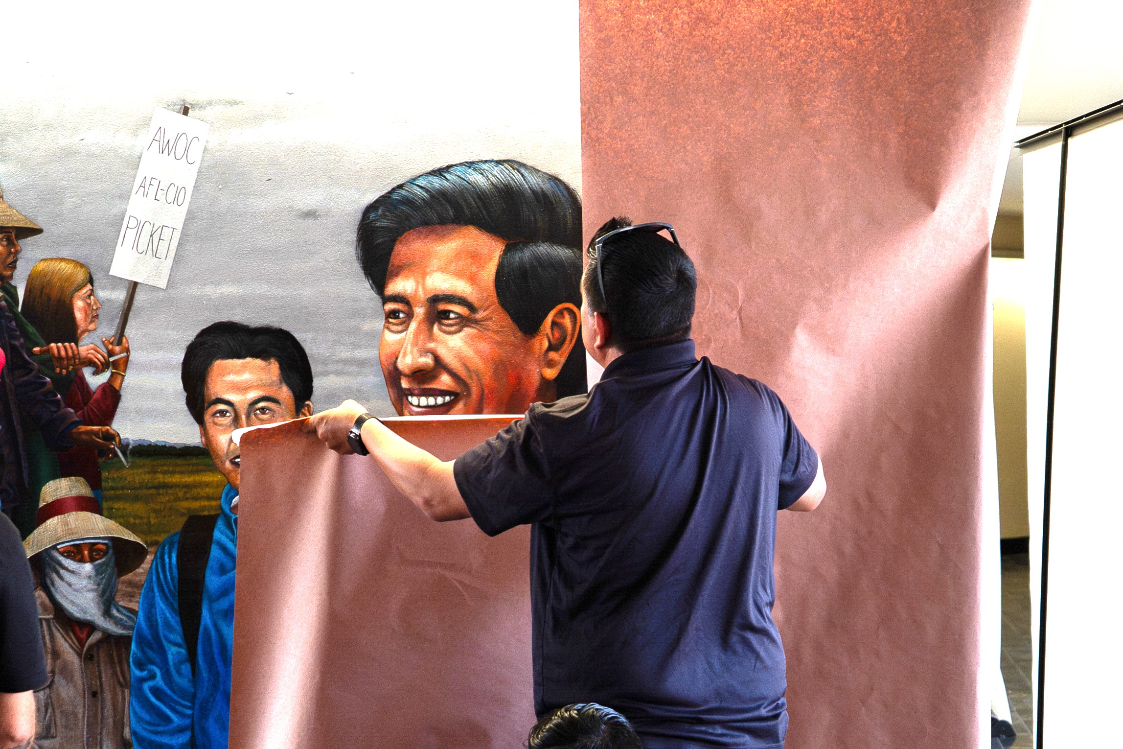 ▲ 3月19日,在加州圣塔安娜学院,一名工作人员正用布覆盖劳工领袖塞萨尔·查韦斯的壁画。查韦斯是美国历史上重要的工会组织者之一,曾创立“联合农场工人联盟”(UFW)于1993年去世。近期,多名自称受害者的人士公开指控其在生前存在性侵及不当行为,相关说法经媒体曝光后迅速引发舆论关注。随着争议升温,美国多地政府及机构开始采取行动,陆续移除与其相关的公共纪念标识,包括壁画、雕像以及以其命名的街道与建筑。美联社