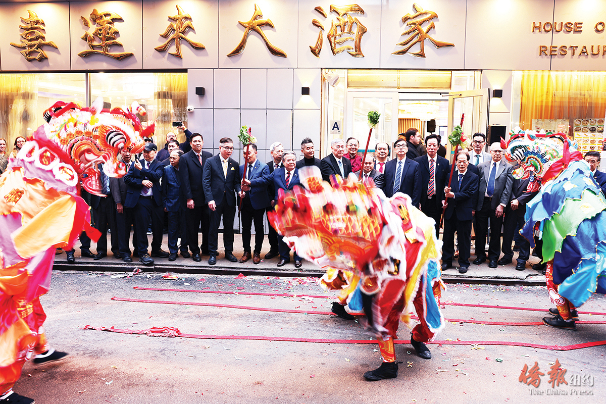 【侨报纽约讯】纽约师公工商总会15日在华埠喜运来大酒楼举办成立102周年新春联欢,中华公所主席伍锐贤等众多侨社代表及客属侨胞出席,期间并安排了极具客家文化特色的舞麒麟表演,现场气氛热烈。