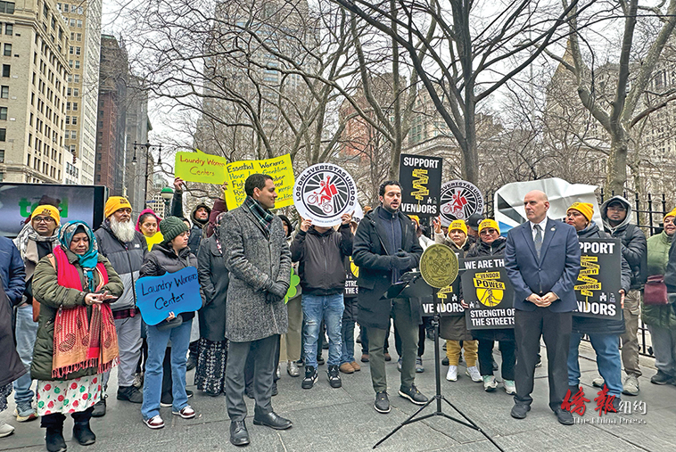 【侨报记者韩清湲3月19日纽约报道】市议员马泰(Christopher Marte)和爱泼斯坦(Harvey Epstein)及摊贩权益人士19日于市政厅外举行集会,呼吁市府在27年预算中设立五百万的工人权利教育基金,让工人权利组织得以针对市议会近期通过的工人新权利展开宣传和教育活动,以使工人能够进一步了解自身在就业、移民等各方面的关键权益。