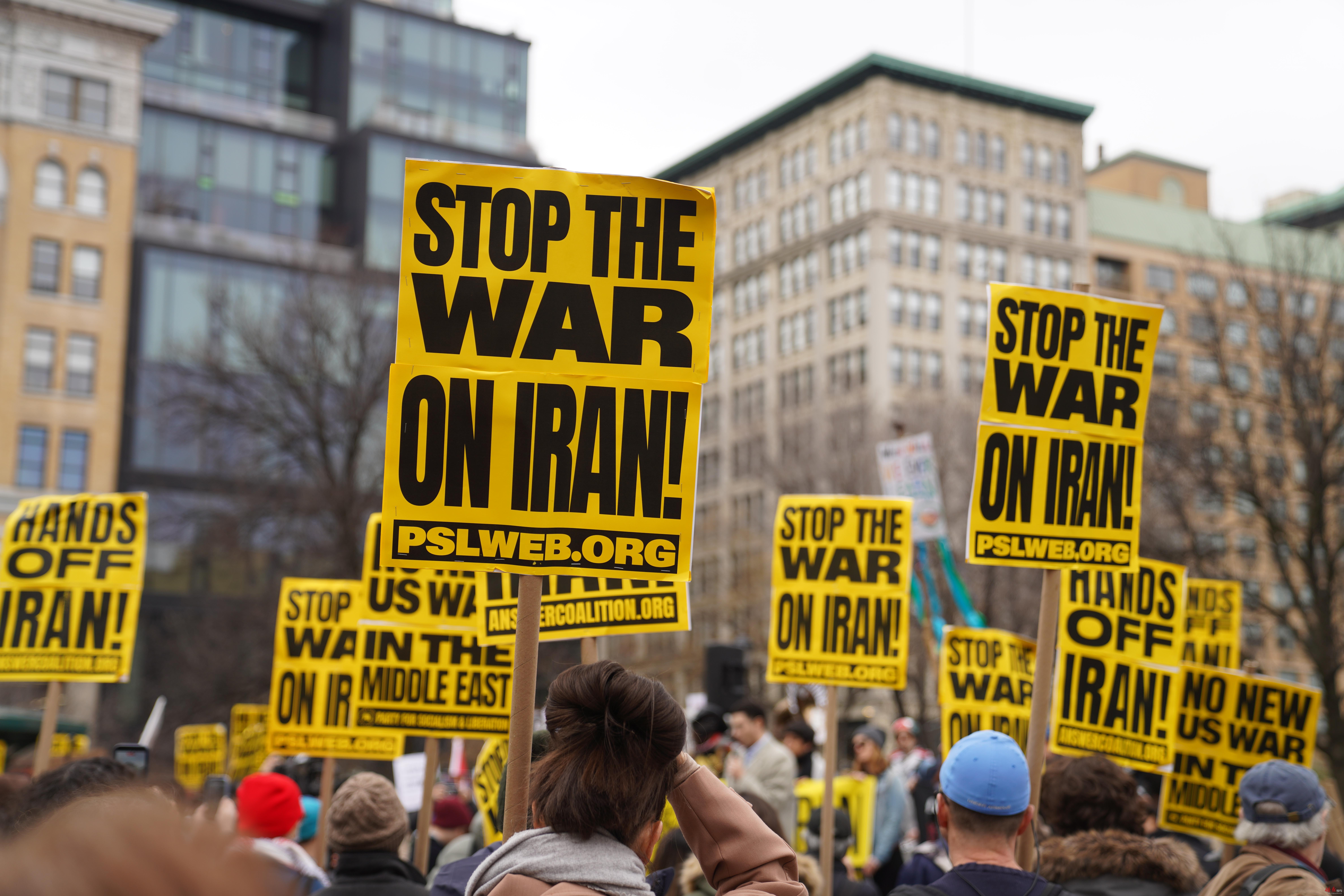 ▲3月7日,民众在纽约参加集会游行,抗议美国和以色列对伊朗发动军事打击。新华社