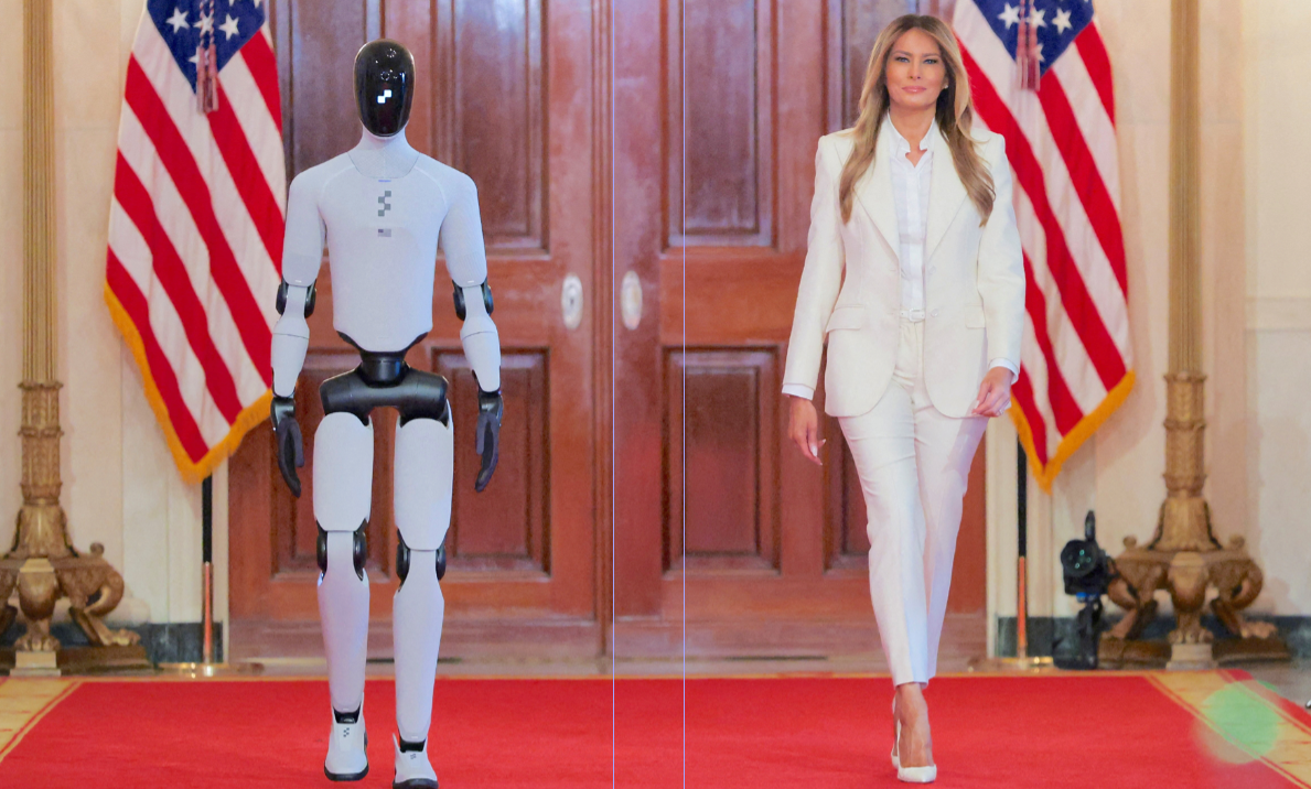 ▲ 3月25日,第一夫人梅拉尼娅出席“共同培育未来”科技峰会,一台名为“Figure 03”的人形机器人沿红毯进入会场并与其一同亮相,向来自多国的第一配偶致意并用11种语言问候来宾。