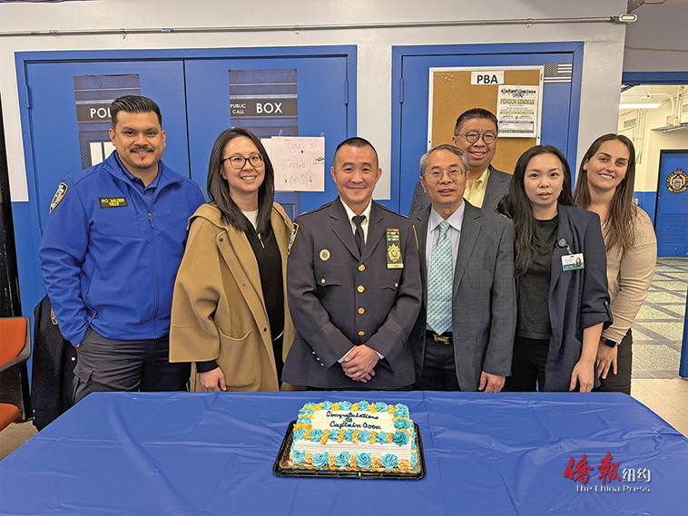【侨报记者崔国萁3月25日纽约报道】为欢迎史坦顿岛市警122分局华裔局长阮俊杰(Capt.Bailey Goon)到任,当地华人机构25日特地送餐到警局,和警员们共享庆祝。