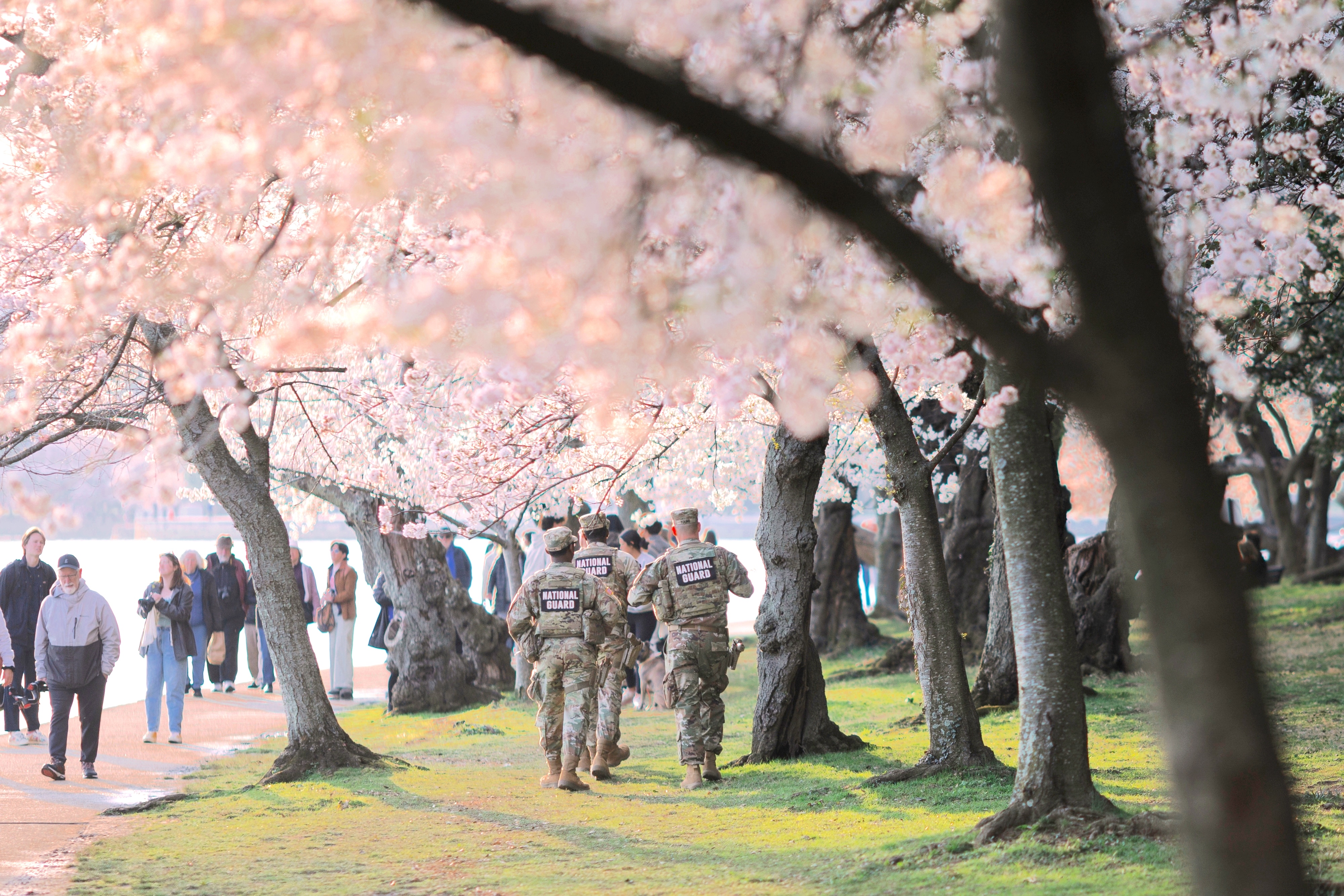 ▲ 3月26日,华盛顿樱花进入年度“盛放期”,数千株染井吉野樱同时开放,将首都点缀为大片粉色景观。与花期同步进行的国家樱花节已于3月20日启动,将持续至4月12日,去年相关活动吸引逾160万游客参与。华府樱花源自1912年东京赠送的3000株树木,日本政府至今仍参与养护及节庆活动,并曾追加捐赠树木。独特的是,今年的华府樱花季将有国民警卫队“驻防”。 美联社