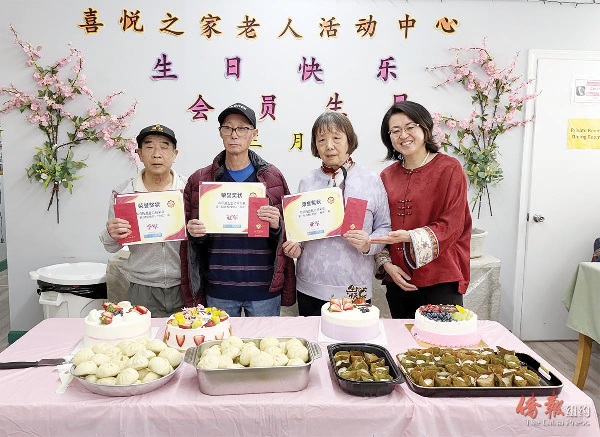 【侨报记者崔国萁3月29日纽约报道】史坦顿岛喜悦之家老人中心近日举行了第三届喜悦(史岛)扑克赛颁奖仪式,向荣获冠亚季军的三位长者颁发了奖状和红包。当天该中心还为三月生日的四位老寿星庆生,现场十分热闹。