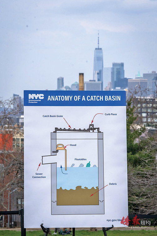 纽约市设有超过15万个雨水排水沟(又称雨水收集井),是本市7500英里污水管网的重要组成部分。通过雨水排水沟系统将雨水导入地下管道,输送到市环保局的14个废水资源回收设施,或直接排入当地水道。当雨水篦子被垃圾或杂物堵塞导致排水不畅时,会增加街道积水的风险。