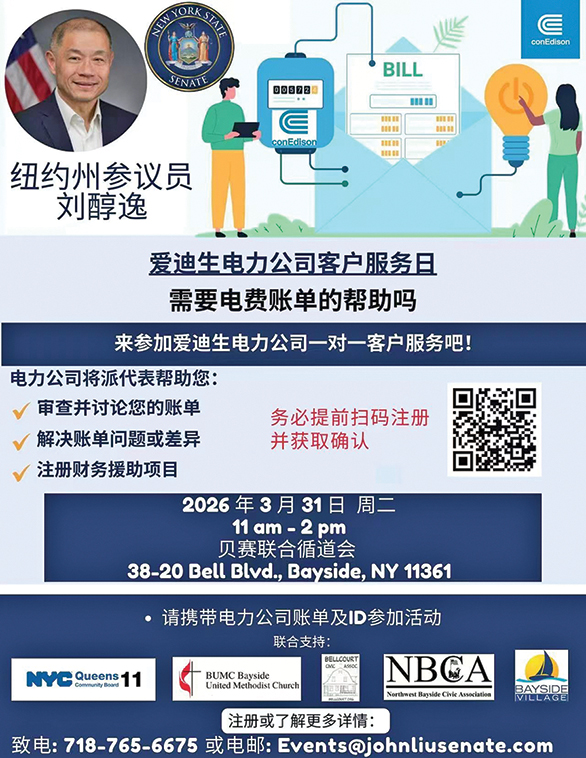 【侨报纽约讯】州参议员刘醇逸(John Liu)办公室31日于贝赛联合循道会举行爱迪生电力公司客户服务日活动。