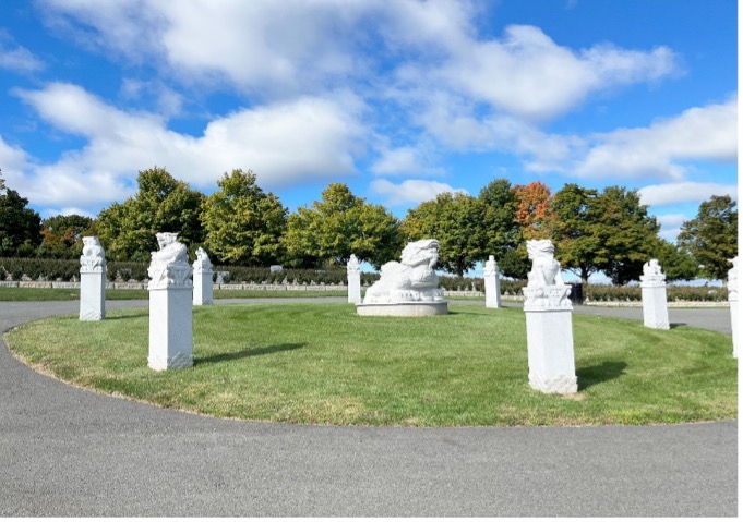 恒福陵园设有象征守护和平安,凝聚财气,子孙延绵多财多福的狮王狮群阵,寓意富贵吉祥,长寿安康的九龙龟,以及象征福运延绵的万福牌坊,皆为深具风水意涵的吉祥物。