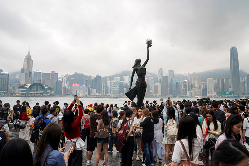 ▲4月4日,中国内地清明假期首日,不少游客在香港尖沙咀星光大道游览。中新社