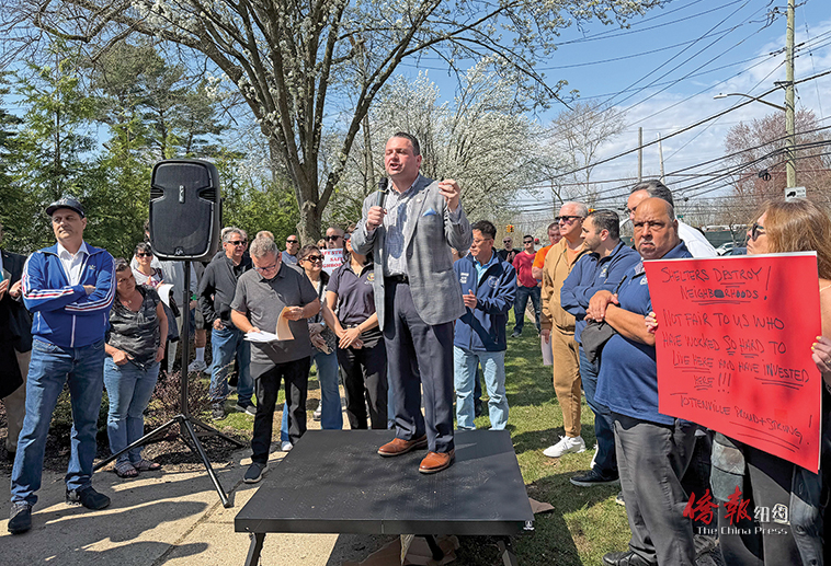 【侨报记者崔国萁4月5日纽约报道】市府要在史坦顿岛南滩(South Shore)一块空地兴建一间专门安置男性无家可归者的游民所计划,遭到当地民众的强烈反对。4日(周六)多位议员携数百民众举行了抗议活动,包括布碌仑86街游民所抗议居民等也到场声援。与会的议员们誓言将抗争到底,并计划在法庭提起诉讼,以阻止该游民所计划。
