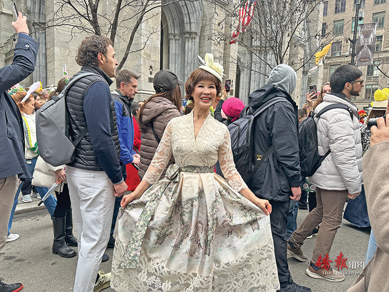 纽约居民吴女士表示,她来美十多年,而参加帽子游行也已有四五年,期间虽因为疫情曾一度中断,但她对于参加游行的热情不褪。因来自贵州,所以还曾穿着过苗族服饰参加游行。对于参加游行的原因,她表示自己不仅喜欢欣赏美的东西,更觉得可以融入并成为这一传统文化的一部分,在欢庆的同时也十分有意义。