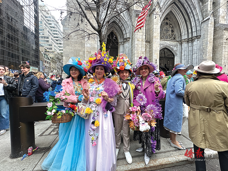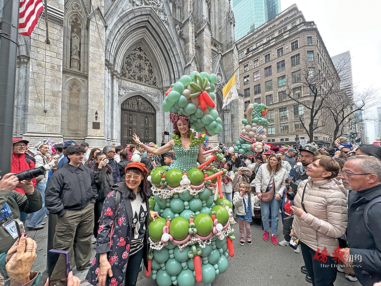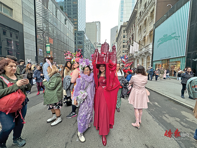 【侨报记者韩清湲4月5日纽约报道】复活节帽子大游行5日(周日)于曼哈顿第五大道举行,成千上万名居民戴着独具匠心的帽子,搭配着令人耳目一新的服装,让整条街上洋溢着欢快的节日氛围。