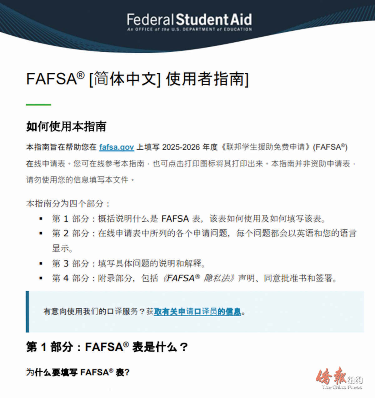 FAFSA简体中文使用指南可查阅:https://shorturl.at/Lsk6n。