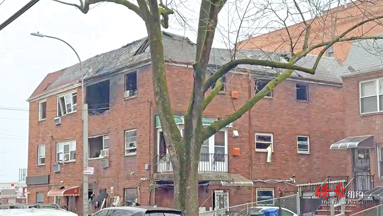 遭到纵火的法拉盛商住两用楼。(韩清湲摄)