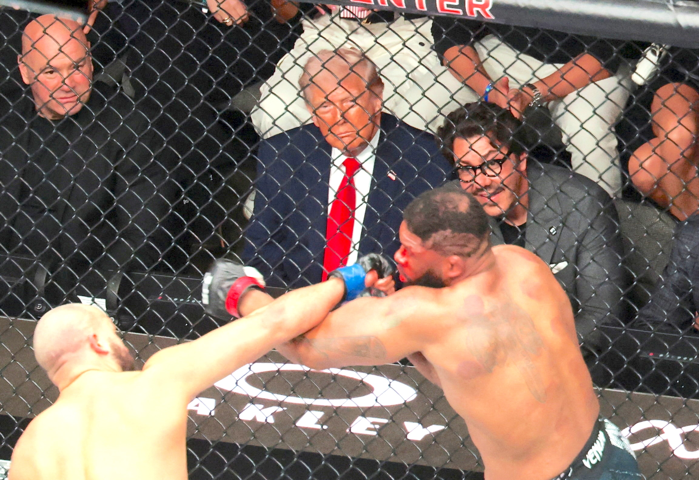 ▲ 4月11日,美国与伊朗和谈期间,特朗普观看UFC 327综合格斗赛事。“UFC 327”是终极格斗冠军赛(Ultimate Fighting Championship)的编号赛事名称,代表该组织举办的第327场大型付费赛事,通常为其年度重点比赛之一。UFC是全球知名综合格斗赛事联盟,汇集不同格斗项目选手进行对抗。特朗普长期与该组织关系密切,过去亦多次出席赛事并公开支持其发展。此次现身现场,被视为其持续参与体育娱乐活动及维持公众曝光的一部分。 路透社