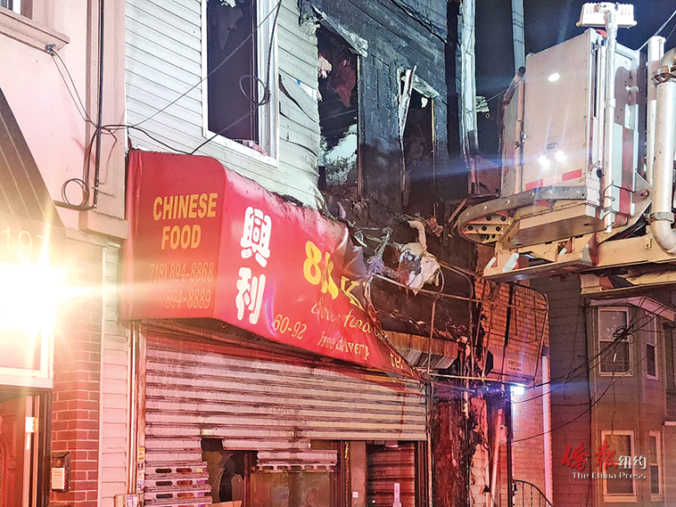 黄友兴拍摄的兴利中餐馆火灾现场。(@PhilWongNYC)