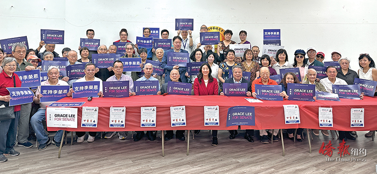 【侨报记者韩清湲4月14日纽约报道】正在竞选27选区州参议员的州众议员李荣恩(Grace Lee)15日于孔子大厦交谊厅举行集会,获得了中华总商会、李氏总分所、梅氏宗亲会、黄氏宗亲会及广海乡亲会联合总会的一致支持。由中华总商会副董事长卢元龙主持。