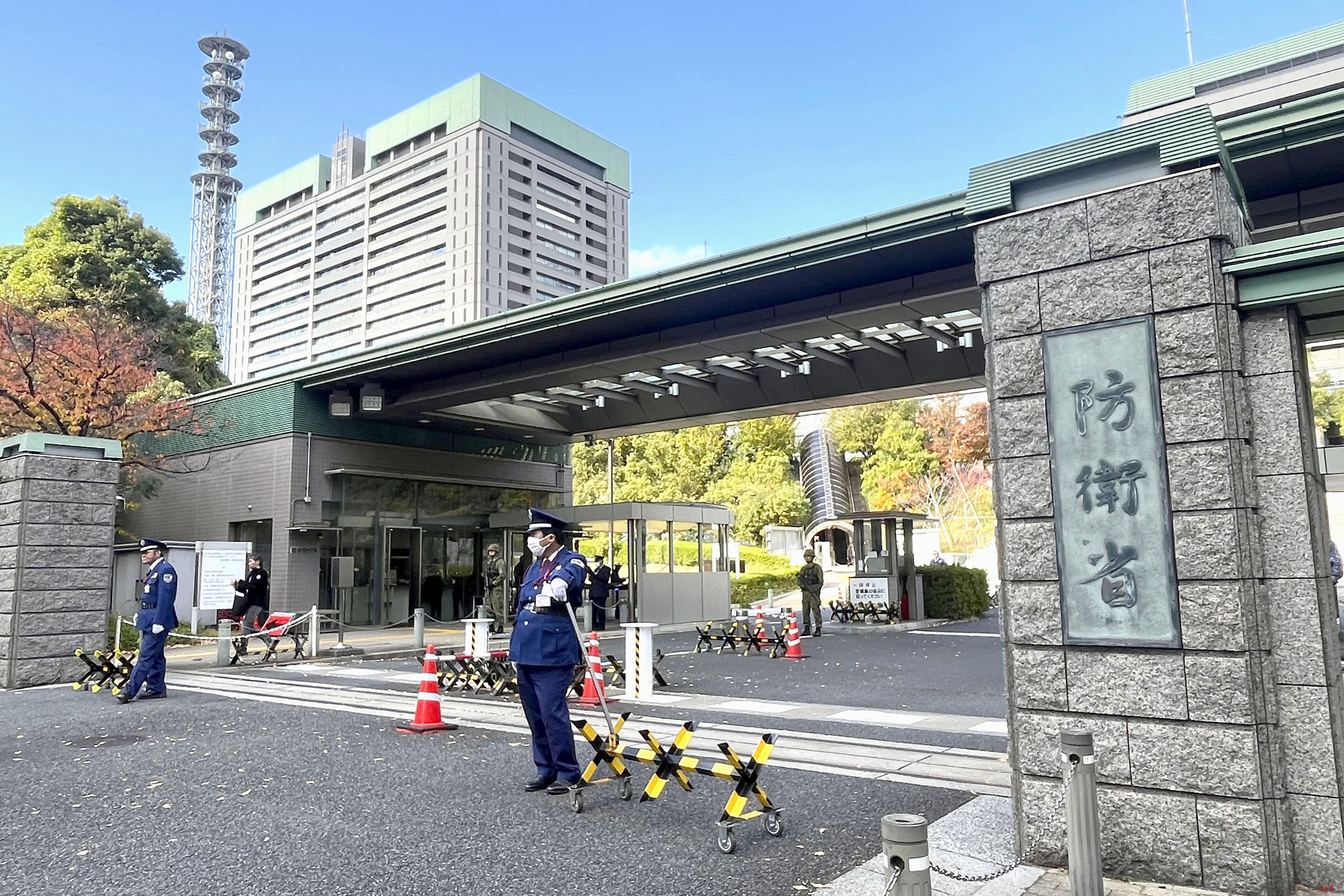 ▲ 图为2025年11月19日,保安人员在东京日本防卫省入口处站岗。(共同社/美联社)