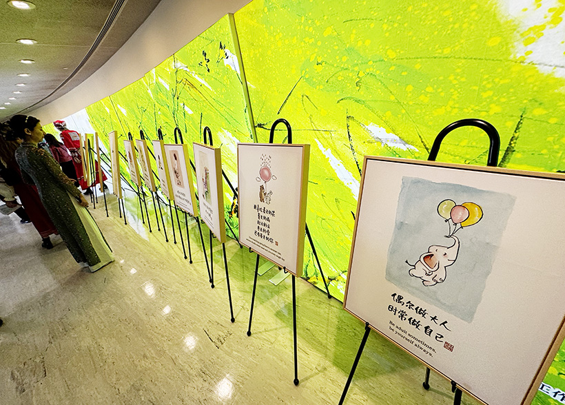 第三个展览是国内知名漫画IP —— 小林(林帝浣)漫画展。该展览将生动描绘谷雨春日的中国水墨长卷与展示现代中国人生活的漫画相结合,为观众呈现了一幅绚丽烂漫又生动有趣的“游春图”。作者林帝浣期望以这种方式将中国的美景与美好生活介绍给世界,让世界更加了解中国和中国的艺术。