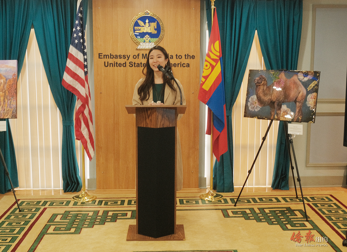 杨筱瑜表示,早在2024年,她在匹兹堡"蒙古协会年会"上发表专题演讲引起关注,并由此与蒙古驻美领事Ankhbayar Ganbold就利用视觉艺术保护文化遗产达成共识,最终在公使的积极推动下,促成了这场在使馆举行的野骆驼保育的里程碑式交流。