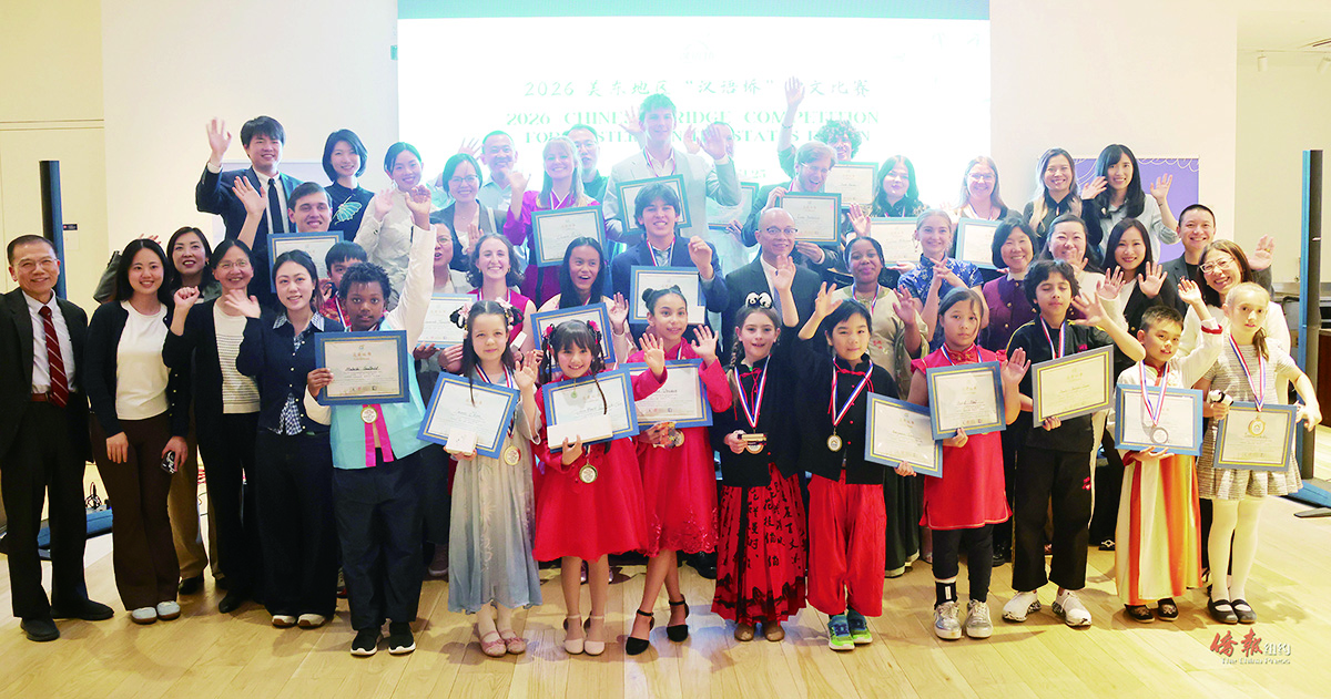 【侨报记者管黎明4月26日纽约报道】2026年“汉语桥”中文比赛美东地区总决赛25日在曼哈顿下城的华美协进社成功举行。来自纽约、新泽西、缅因州等5个州的28名不同年龄段的中文学习者及他们的家人共120余人冒雨参加了比赛活动。选手们在比赛期间不但展示了各自的中文语言水平,更为观众们带来了精彩的才艺表演。