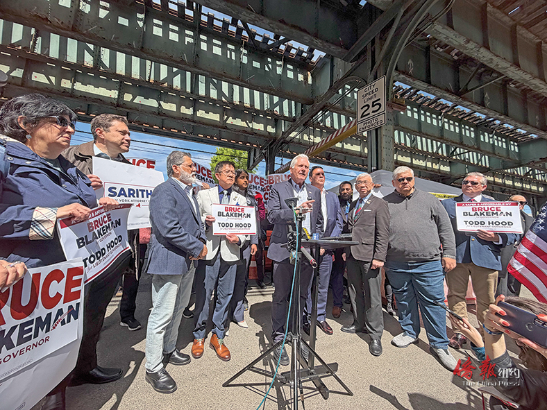 【侨报记者崔国萁4月26日纽约报道】共和党纽约州长参选人、长岛纳苏郡郡长布莱克曼(Bruce Blakeman),26日前来布碌仑86街拟建游民所抗议现场,抨击纽约市现行的游民所政策,呼吁提高游民收容所透明度,赋予更多社区参与权,让社区成为养育子孙后代的宜居之地。