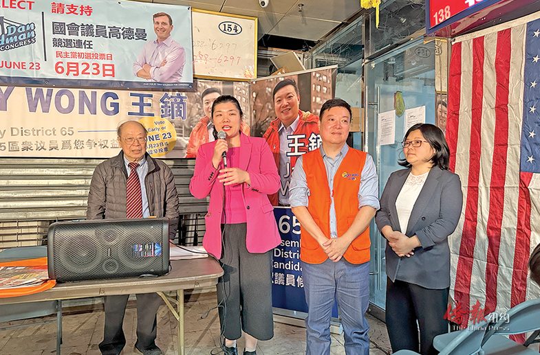 庄文怡表示,“民选官员不能只提供情绪价值,要脚踏实地做事情。从反对游民所、反对华埠监狱等各项工作中,王镝积极参与,在很多深夜都还在和我打电话沟通工作。社区居民不管参选人是什么党派宗教、说什么语言、是什么族裔,要的就是能够真正做事的民选官员。我相信王镝若当选将继续推动华埠发展,降低租金等全面各项工作,恳请大家为他投出最宝贵的一票。”